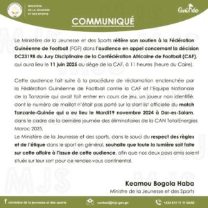 La Guinée sera face à la confédération africaine de football (CAF) ce mercredi 11 juin 2025 dans le cadre de son litige qui l’oppose à la Tanzanie, concernant l’utilisation d’un numéro qui ne figurait pas sur la feuille du match.